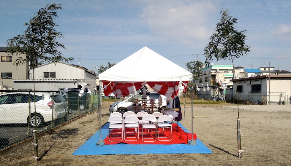 工事の無事を祈願しまして、地鎮祭を執り行いました。