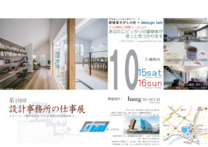 この度 建築家さがしの杜 の主催で「第18回 設計事務所の仕事展」を 10/15(土)、16(日)に大阪ガスのハグミュ-ジアムにて開催いたします。 具体的な計画があるかだけでなく、設計事務所の関わった住まいに ご興味のあ […]