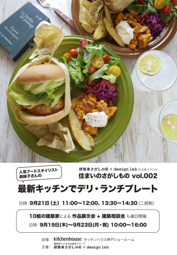 「イベント01 最新キッチンでデリ・ランチプレート」は、おかげさまで満席となりました。「イベント02 10組の建築家による作品展示会+建築家無料相談会」は、引き続き募集中です!皆様、この機会にぜひ、お申し込みください!