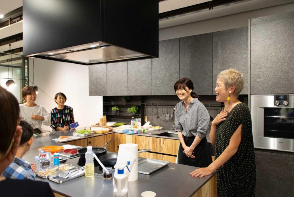イ ベ ン ト が ⾏ わ れ た Kitchen House 神 ⼾ 店 の ショー ルー ム は、 最 新 式 の キッ チ ン を 実 際 に 体験 す る こ と が で き る 貴 重 な 場 で す。 ゲ ス ト と し て、 ⼈ 気 フー ド ス タ イ リ ス ト・ イ ン ス タ グ ラマー で あ る 森 映 ⼦ さ ん に お 越 し い た だ き、 デ リ ラ ン チ プ レー ト づ く り を 教 え て い た だ き ま した。