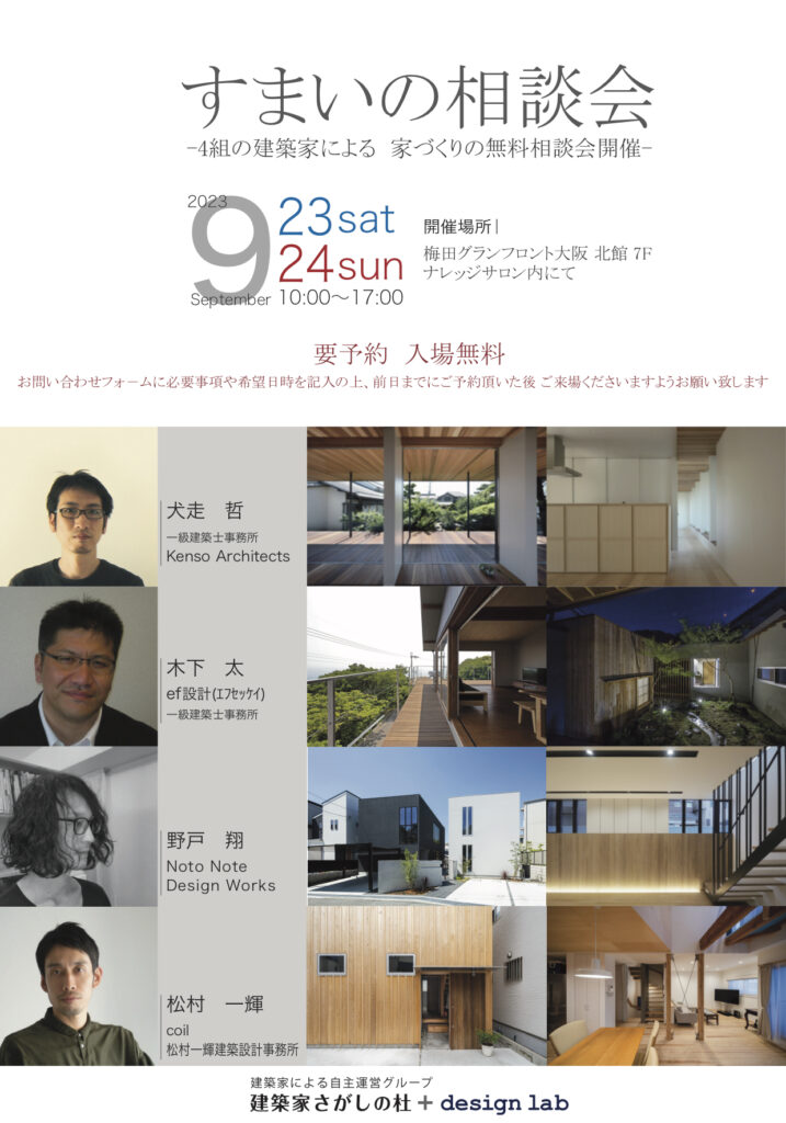 4組の建築家による 建築・住宅 住まいづくりの無料相談会を行います。